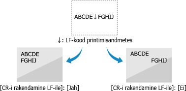 Kui valitud on väärtus [Ei], siis liigub printimiskoht reavahetuskoodi vastuvõtmisel järgmisele reale vahetult reavahetuskoodi alla.