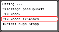 Kui traadita kohtvõrgu marsruuter toetab WPS PIN-koodi režiimi, saate luua ühenduse, kui registreerite seadme genereeritud PIN-koodi traadita kohtvõrgu marsruuterile. Registreerige PIN-kood arvuti kaudu.