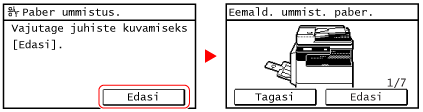 Kui kõik paberiummistused on kõrvaldatudVõtke käed kohe printerist ja lisaseadmetest eemale, et riided või käed ei jääks rullide vahele.