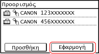Εάν εμφανιστεί η οθόνη [PIN Βιβλίου Δ/νσεων], εισαγάγετε το PIN και πατήστε [Εφαρμογή].