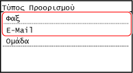 Εάν παρουσιαστεί σφάλμα κατά την αποστολή φαξ σε έναν διεθνή προορισμό, επιλέξτε [Διεθνής (1)]. Εάν δεν διορθωθεί το σφάλμα, επιλέξτε [Διεθνής (2)] και [Διεθνής (3)], με αυτήν τη σειρά.