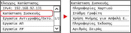 Όταν πατάτε ένα όνομα στοιχείου ή ένα κουμπί, μπορείτε να επιλέξετε το στοιχείο. Εμφανίζεται η επιλεγμένη οθόνη ή εκτελείται η επιλεγμένη λειτουργία.