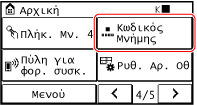 Στον πίνακα ελέγχου, πατήστε [Κωδικός μνήμης] στην οθόνη [Αρχική].