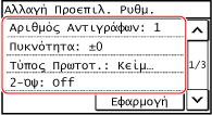 [Αλλαγή Προεπιλεγμένων Ρυθμίσεων]