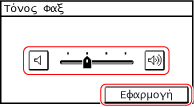 Μπορείτε να ρυθμίσετε την ένταση του ήχου εισερχόμενου φαξ και των ήχων που σας ειδοποιούν για την επιτυχημένη αποστολή και λήψη φαξ, καθώς και για την επιτυχημένη σάρωση πρωτοτύπων.
