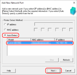 Επιλέξτε [Αυτόματος εντοπισμός] και τη συσκευή και κάντε κλικ στο [Επόμενο].
