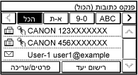 כאשר אתה מתקשר לספר הכתובות ממסך ה-[בית] או ממסך הסריקה או הפקס, יוצג המסך הבא.