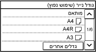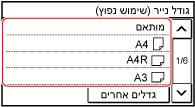 ניתן לשנות את גודל הנייר המוצג על המסך בשלב 1. הסתרת גודל נייר שאינו בשימוש