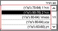 כאשר נרשמים גדלי נייר שאינם סטנדרטיים בשימוש תכוף, הגודל הרשום מוצג כגודל הנייר. רישום נייר בגודל לא סטנדרטי (נייר מותאם אישית)