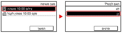 אם מסך רשימת המשימות מוצג, בחר את העבודה לביטול ולחץ על [כן].
