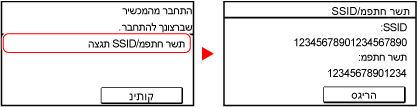 לחץ על [הצגת SSID/מפתח רשת] על מנת לבדוק את ה-SSID ומפתח הרשת של המכשיר.