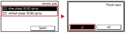 אם מסך רשימת המשימות מוצג, בחר את העבודה לביטול ולחץ על [כן].