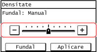 Apăsați pe butoanele [+] și [-] pentru a regla valoarea. Când glisorul este afișat așa cum este indicat mai jos, îl puteți glisa la stânga sau la dreapta pentru a regla valoarea.
