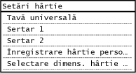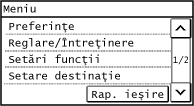 Modificarea afișajului de pe ecranPuteți modifica afișajul de pe panoul de control, de exemplu prin modificarea limbii de afișare și a unităților, respectiv prin afișarea sau ascunderea mesajelor. [Setări afişaj]