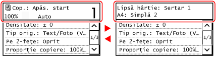 de pe panoul de control. În mod implicit, ecranul [Pornire] este afișat imediat după cuplarea alimentării electrice și imediat după închiderea ecranului de pornire, respectiv imediat după conectare. Ecranul [Pornire]