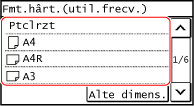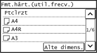 Când sunt înregistrate mai multe formate de hârtie nestandard, formatul înregistrat este afișat ca format de hârtie. Înregistrarea hârtiei de format nestandard (hârtie personalizată)