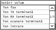 [Ton fax] / [Ton TX terminată] / [Ton RX terminată] / [Ton scanare terminată]