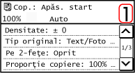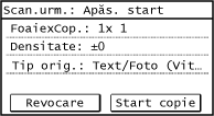 Repetați acest proces până la scanarea tuturor originalelor. Puteți apăsa pe [Densitate] și pe [Tip original] pentru a modifica setările pentru fiecare original. În funcție de setările de copiere specificate, [Tip original] nu poate fi modificat.