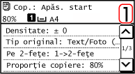* Când utilizați funcția Copie pașaport pentru a efectua copii, raportul de copiere este setat automat în funcție de formatul de hârtie utilizat la copiere și de numărul de pașapoarte care se combină. Puteți apăsa pe [Raport personalizat] pentru a modifica manual raportul de copiere.