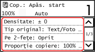 Apăsați pe [Densitate] pe ecranul de copiere.