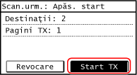 Când scanarea tuturor originalelor s-a încheiat, apăsați pe [Start TX].