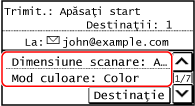 Puteți scana un original și trimite datele scanate prin e-mail, sub formă de fișier atașat. Ca și atunci când trimiteți un e-mail normal, puteți adăuga un subiect și un mesaj și puteți specifica mai multe destinații.