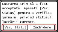 Verificarea stării de trimitere și salvare și a jurnalului datelor scanateApăsarea pe [Închidere] determină afișarea ecranului de scanare.