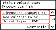 * Pentru a salva datele scanate la un computer, configurați setările cu MF Scan Utility sau ScanGear MF instalate pe computer. Nu puteți utiliza panoul de control pentru configurarea setărilor.
