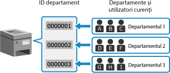 Alocați ID-uri de departament utilizatorilor și grupurilor, în funcție de mediul de utilizare și de obiectivul urmărit. De asemenea, setarea unui cod PIN la un ID de departament poate preveni accesul neautorizat și permite o gestionare mai strictă.