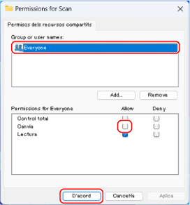 A [Usuaris], seleccioneu [Tothom]  [Llegir i escriure].