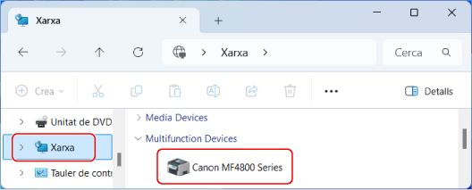 Si es mostra [Canon MFNP Port] a [Descripció], la connexió es manté fins que l'equip i l'ordinador pertanyin a la mateixa subxarxa. Per tant, no cal fer res a l'ordinador.