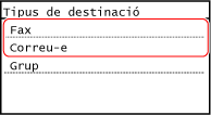 Si es produeix un error de comunicació en enviar un fax a una destinació internacional, seleccioneu [Internacional (1)]. Si l'error no millora, seleccioneu [Internacional (2)] i [Internacional (3)] en aquest ordre.