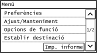 Modificació de la visualització de la pantallaPodeu canviar la visualització del tauler de control modificant l'idioma i les unitats de visualització o bé fent aparèixer o amagant missatges. [Opcions de visualització]