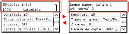 Esborrament automàtic dels paràmetresDe manera predeterminada, si ha passat un cert temps sense que es realitzi cap operació, els paràmetres que s'estiguin configurant a la pantalla s'esborraran i apareixerà la pantalla [Inici]. Podeu canviar el temps que ha de passar fins que s'esborrin els paràmetres i la pantalla que es mostrarà després.