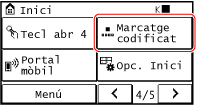 Al tauler de control, premeu [Marcatge codificat] de la pantalla [Inici].