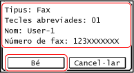 Comproveu que la destinació sigui correcta i premeu [Bé].