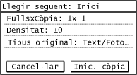 Repetiu aquest procés fins a completar la lectura de tots els originals. Podeu prémer [Densitat] i [Tipus original] per canviar les opcions de cada original. Depenent de la configuració de còpia, [Tipus original] no es podrà canviar.