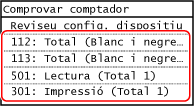Podeu comprovar el nombre de pàgines impreses en blanc i negre en paper de mida B4 o inferior.