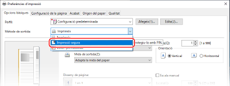 Impressió d'un document protegit amb un PIN (Impressió segura)