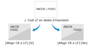 Si se selecciona [No], la posició d'impressió es mou cap a la línia següent, just a sota del codi LF rebut.