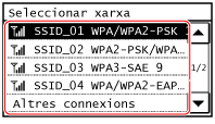 Quan vulgueu fer servir un altre mètode de xifratge, connecteu-vos amb el mètode de configuració del punt d'accés. Per especificar un mètode d'autenticació o xifratge diferent, utilitzeu el mètode de configuració manual per connectar-vos. Connexió a una LAN sense fil configurant-ne els detalls (mètode de configuració manual)