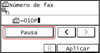 Inicieu sessió a Remote UI (IU remota)  [Settings/Registration]  [TX Settings]  [Fax TX Settings]  [Edit]  a [Set Pause Time], introduïu el temps de pausa  [OK]
