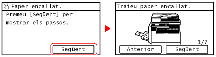 No retireu amb força el paper encallat de l'equip.Si ho feu, es poden danyar algunes peces de l'equip o provocar alguna lesió personal. Si no podeu treure el paper, poseu-vos en contacte amb el distribuïdor o el servei tècnic.