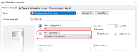 Ajusteu la [Mida d'impressió] del controlador de la impressora amb la mida del paper amb el qual imprimireu.