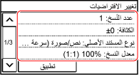 يمكنك تغيير الإعدادات الافتراضية للمسح الضوئي والنسخ والوظائف الأخرى التي يتم استدعاؤها باستخدام لوحة التحكم.