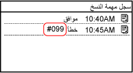 إذا تعذر إجراء الطباعة، أو حدث خطأ آخر، فسيتم عرض رمز خطأ (رقم مُكوَّن من ثلاثة أرقام يبدأ بـ "#") في سجل المهام.