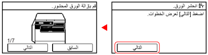 في حالة حدوث انحشار الورق في الجهاز، تظهر [انحشر الورق.] على لوحة التحكم. اضغط على [التالي]، واتبع الإرشادات المعروضة حول كيفية إزالة الورق المحشور.
