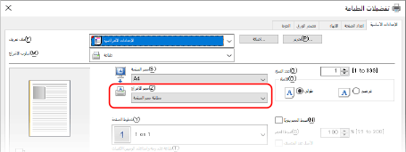 قم بمطابقة [حجم المخرجات] في برنامج تشغيل الطابعة مع حجم الورق المراد الطباعة عليه.
