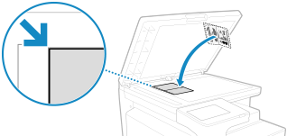 Поставете страницата, която ще сканирате, обърната надолу, като същевременно подравнявате ъгъла на паспорта с горния ляв ъгъл на стъклото за сканиране, както е показано.