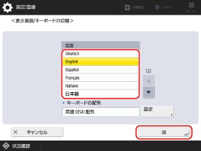 表示言語は、操作パネルを使用して切り替えます。パソコンからリモートUIを使用して切り替えることはできません。